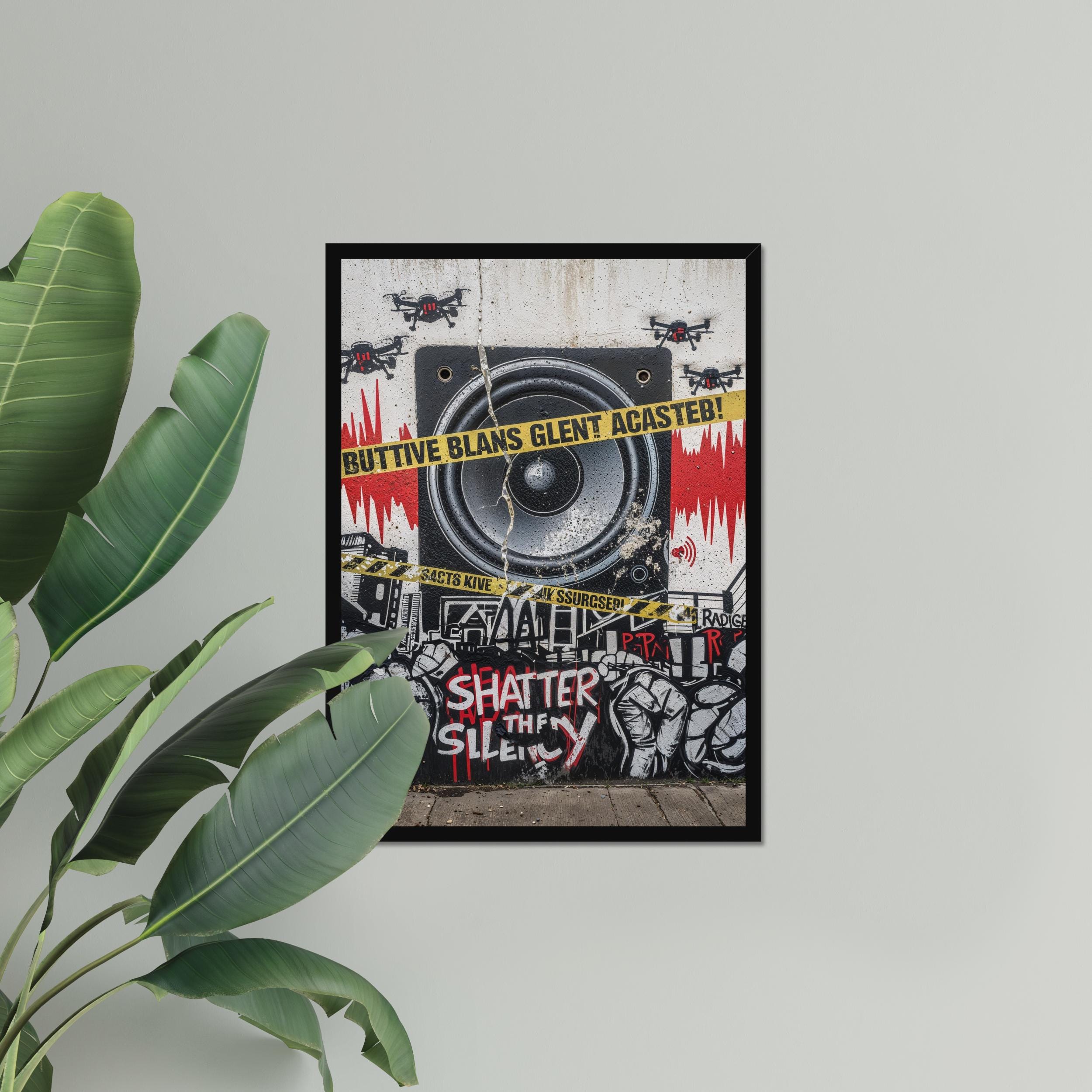 This street art poster is a gritty fusion of texture, rebellion, and cultural layers — blending torn graffiti, abstract figures, and neon noise into one powerful collage. With bold contrasts and a dynamic layout, it brings the chaotic energy of urban expression straight into your interior.